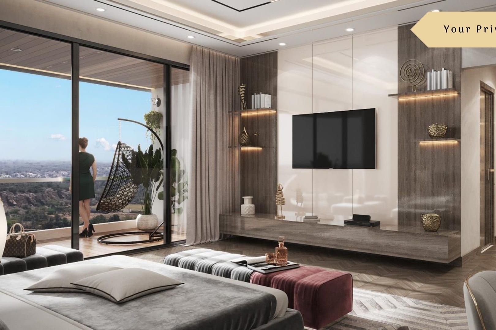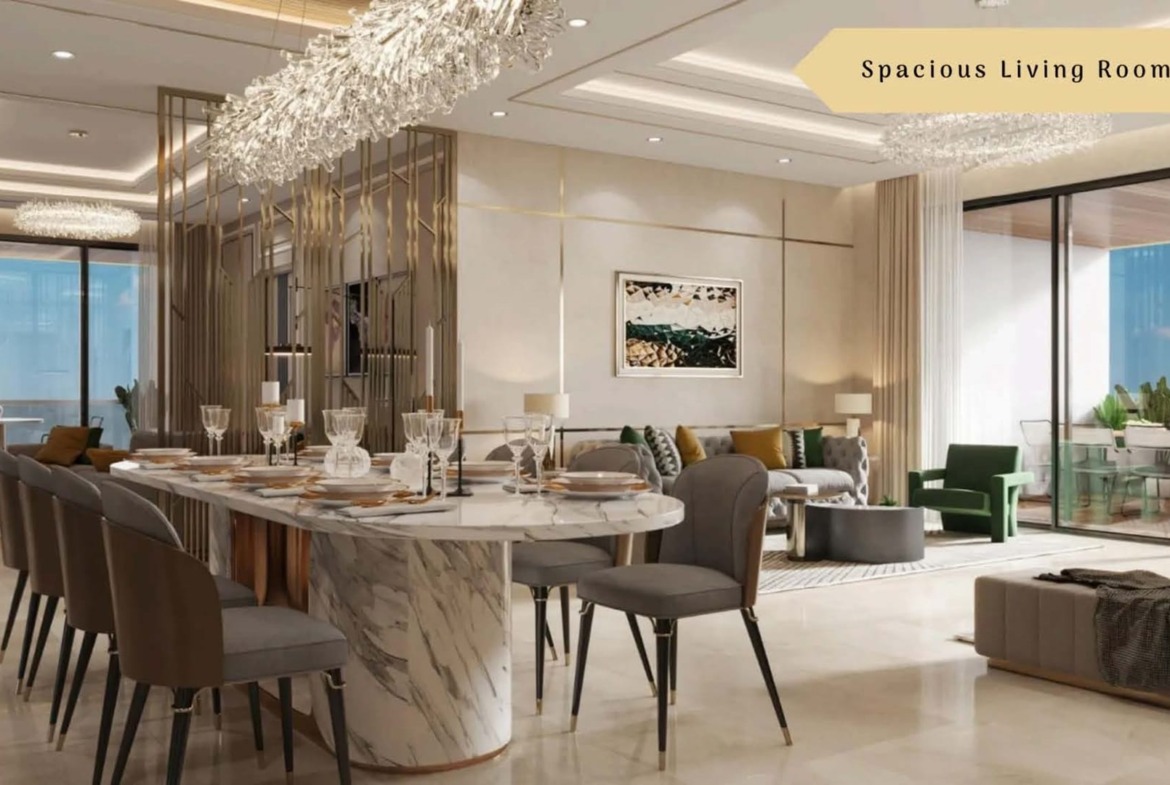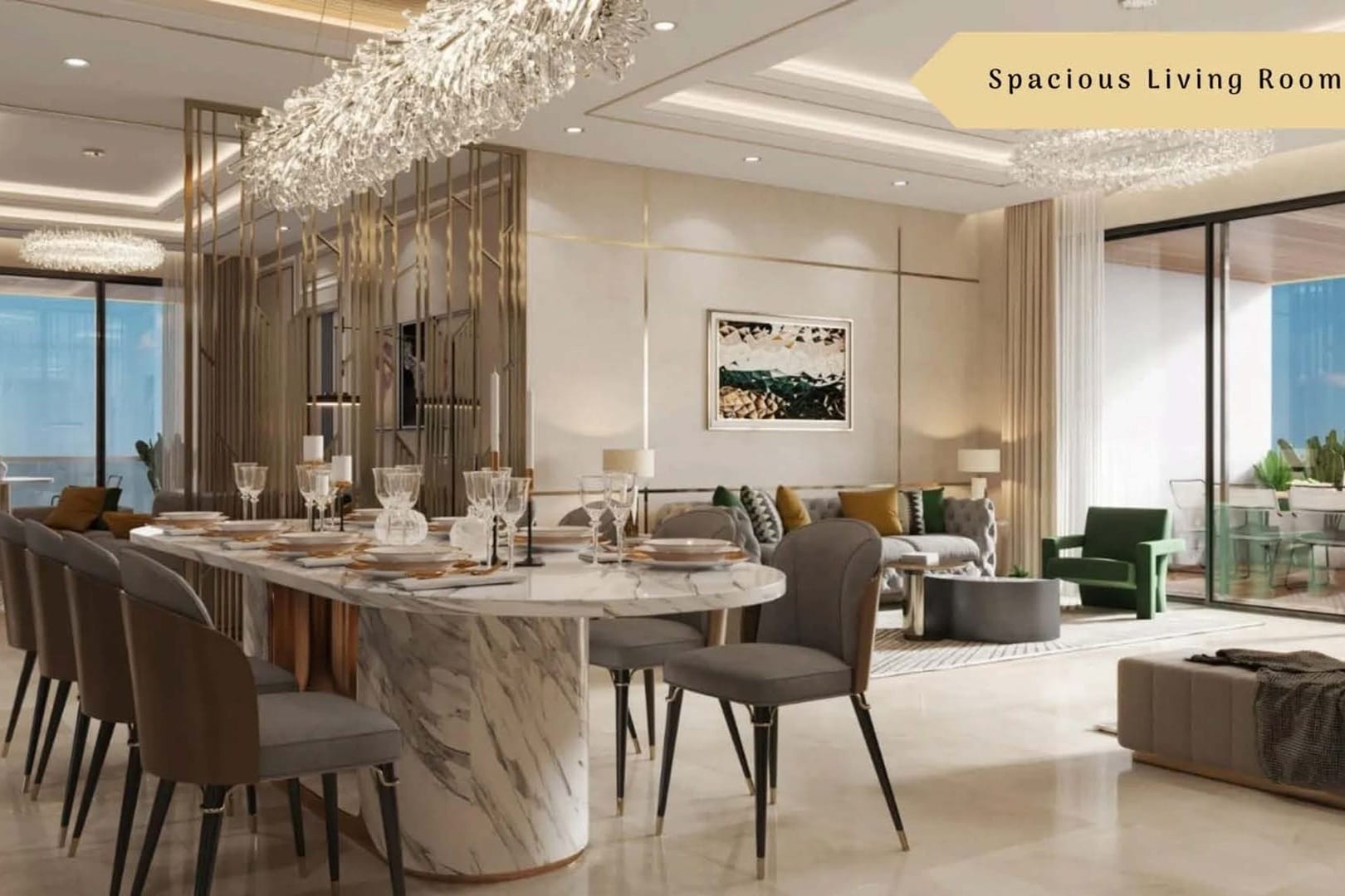 Architectural Excellence: Designed by the renowned Hafeez Contractor, the apartments feature elegant chandeliers, glass facades, and 11-foot ceilings, giving a sense of openness and luxury.