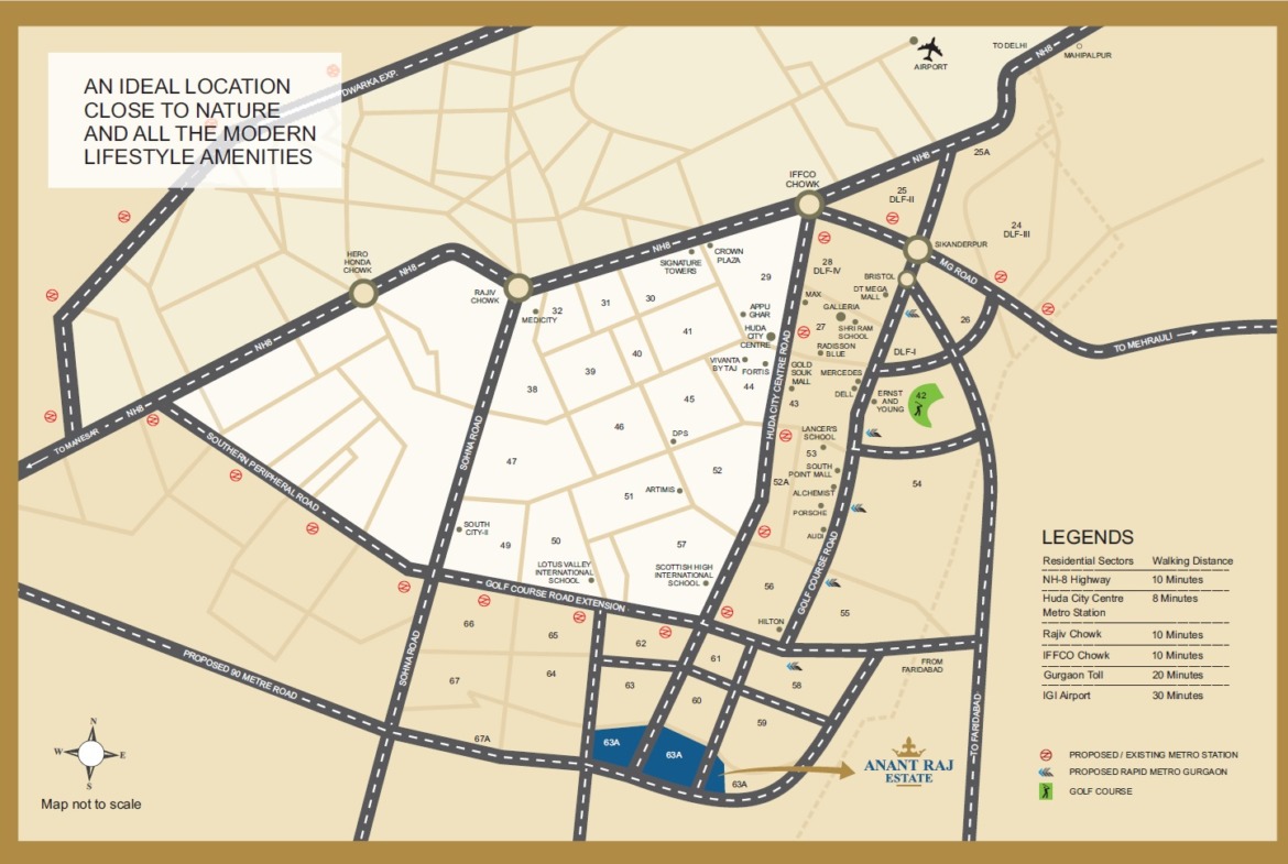 Strategically located in the heart of Gurgaon, a city celebrated for its dynamic trade and commerce, Anantraj Estate benefits from proximity to global-class developments that guarantee an exceptional standard of living.