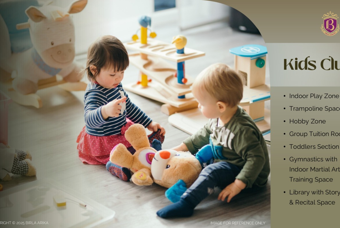 A dedicated play area and kids’ zone ensure that younger residents have plenty of fun and safe spaces to explore.