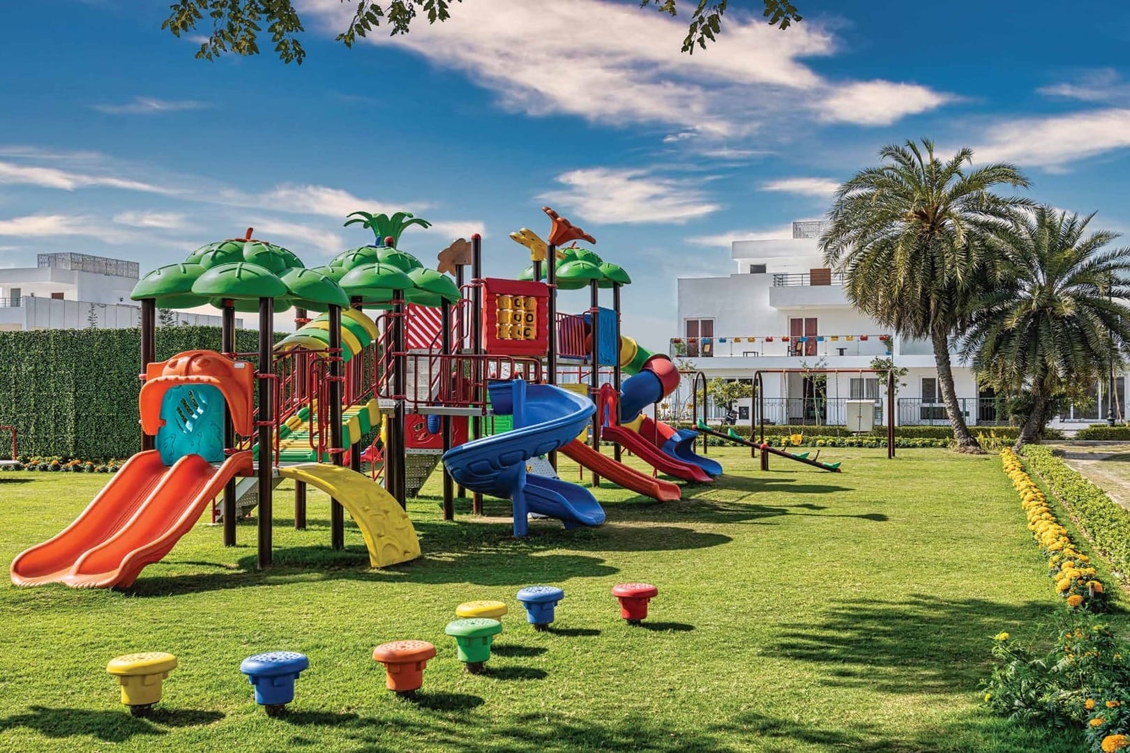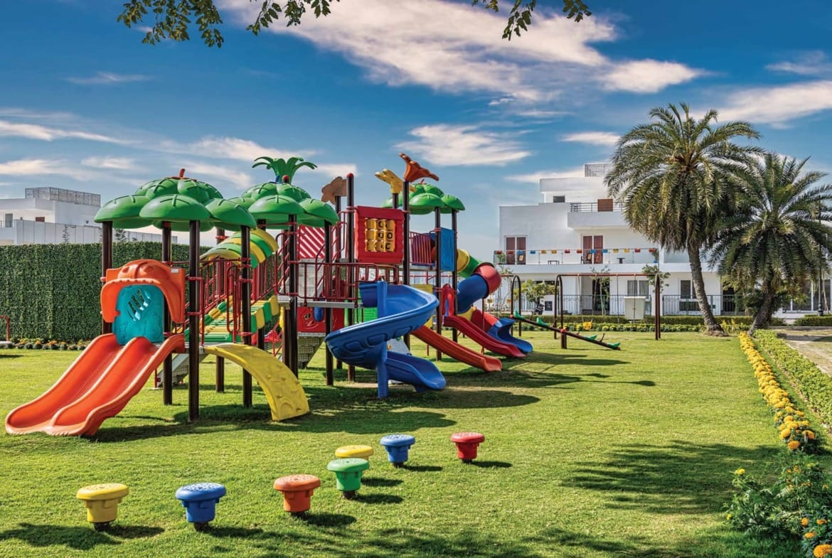 Family-Oriented Spaces: Kids’ play area, dedicated kids’ pool, landscaped gardens, and outdoor lounges.