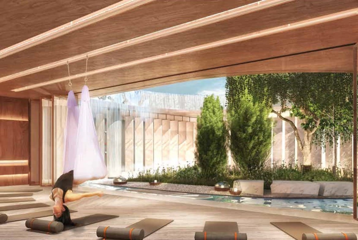 A calming wellness space featuring a meditation garden, dedicated yoga studio, and a full Pilates studio.