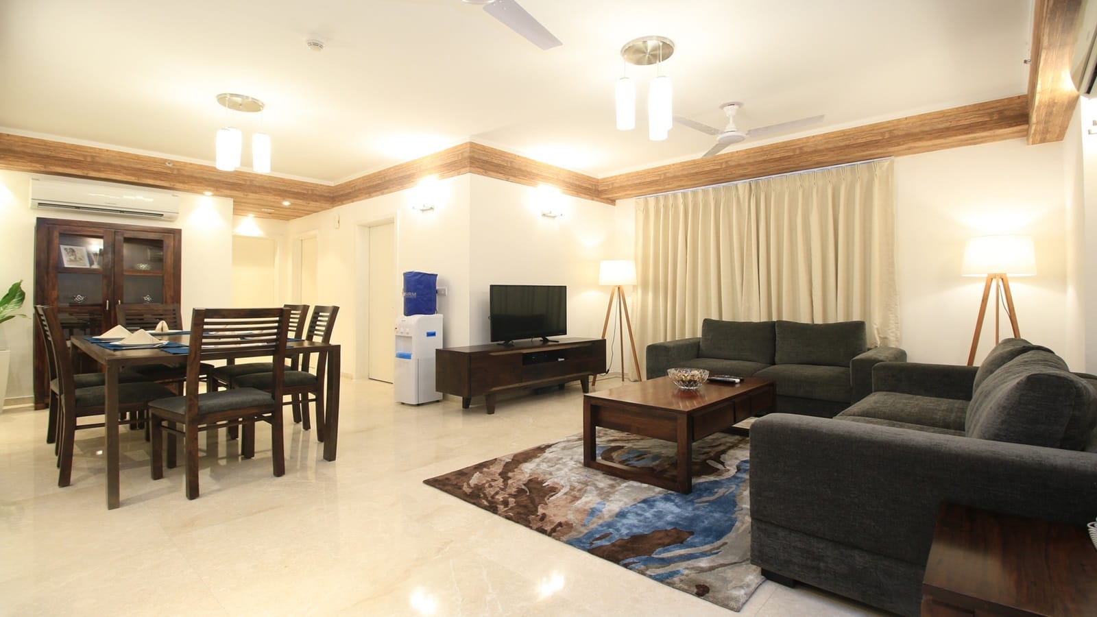 The apartments are centrally air-conditioned, ensuring a comfortable living environment year-round.