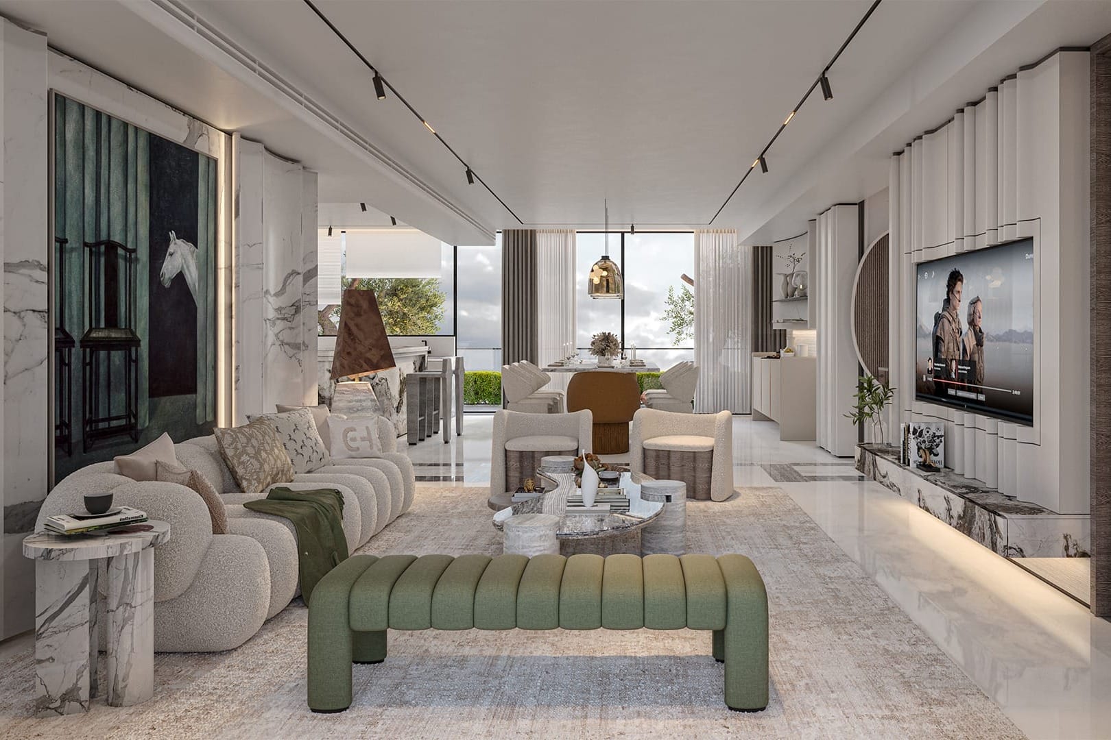 Italian Statuario Marble Flooring:Experience timeless elegance with premium Italian marble throughout your home.