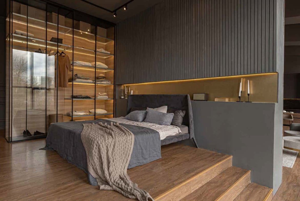 Laminated wooden flooring in bedrooms.