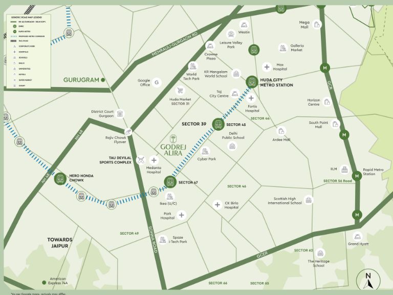1. Where is Godrej Alira located? Godrej Alira is located in Sector 39, Gurugram, close to Medanta Hospital, Subhash Chowk, NH-48, Sohna Road and HUDA City Centre Metro Station. It sits in the heart of the city with excellent access to business hubs, schools, malls and hospitals.