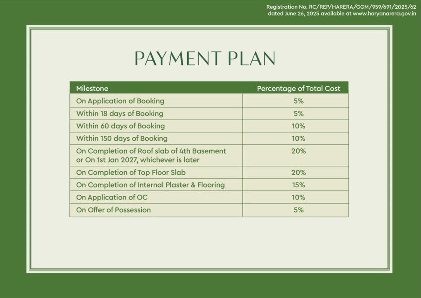 Registered under HRERA (RC/REP/HARERA/GGM/959/691/2025/62 dated 26 June 2025), the project combines premium positioning with regulatory transparency.
