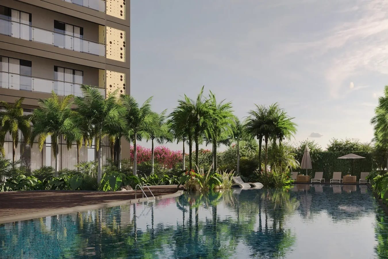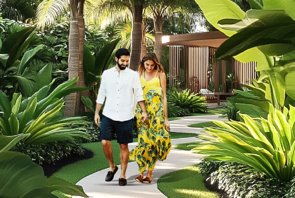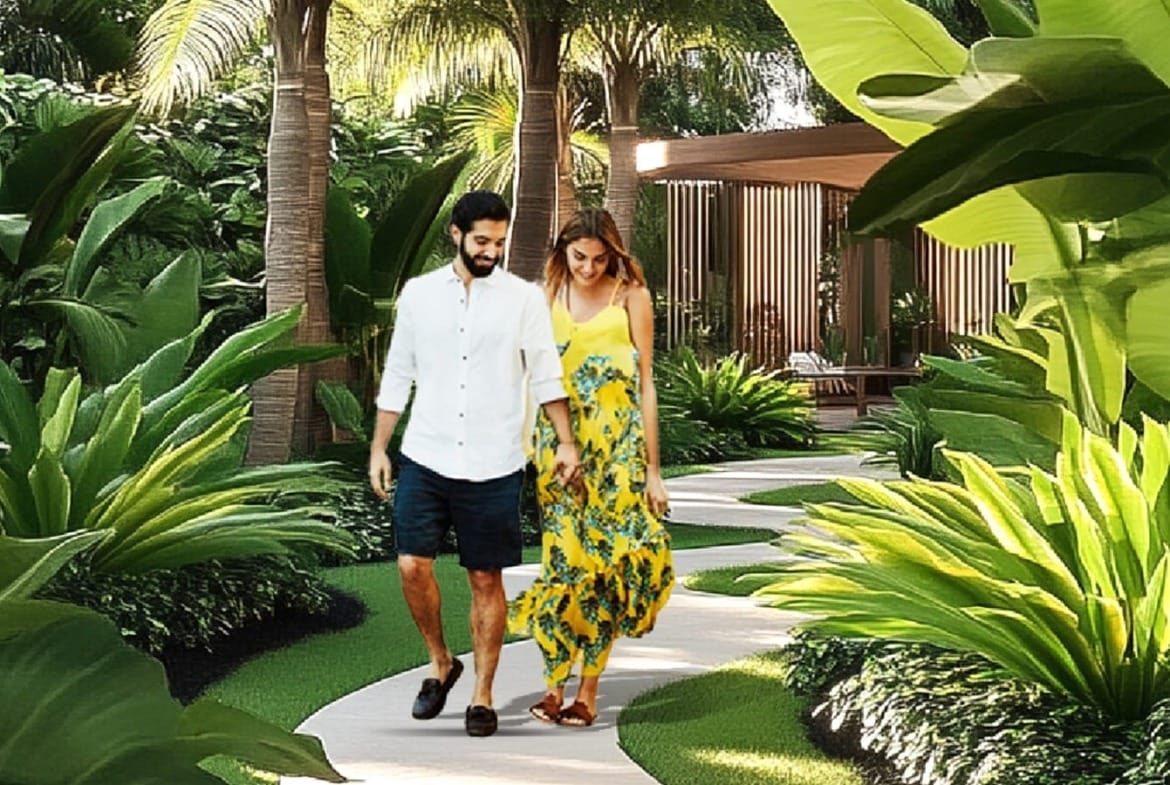 Palm-lined boulevard, landscaped greens, and curated leisure amenities create a premium living experience.