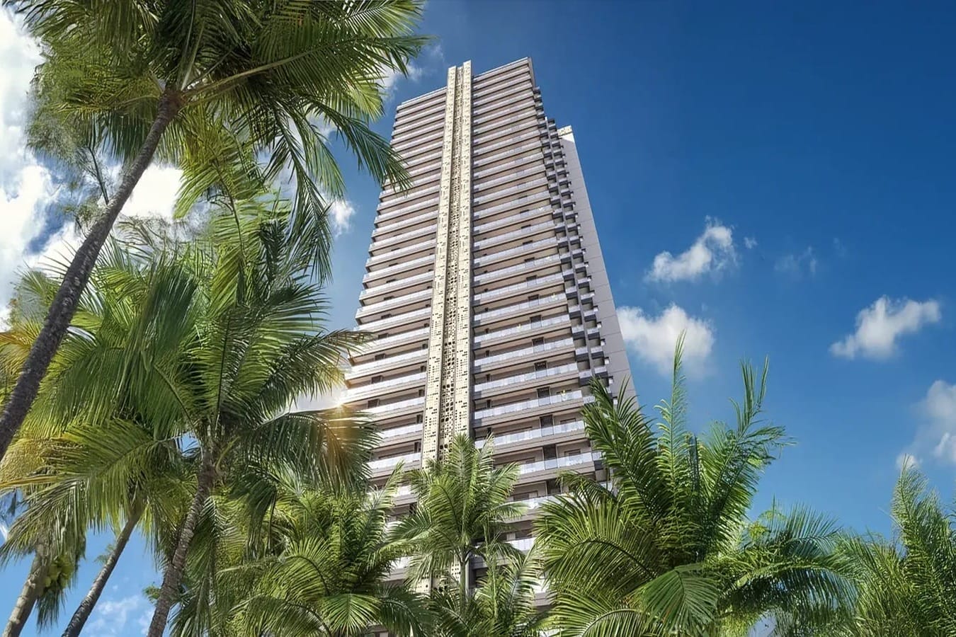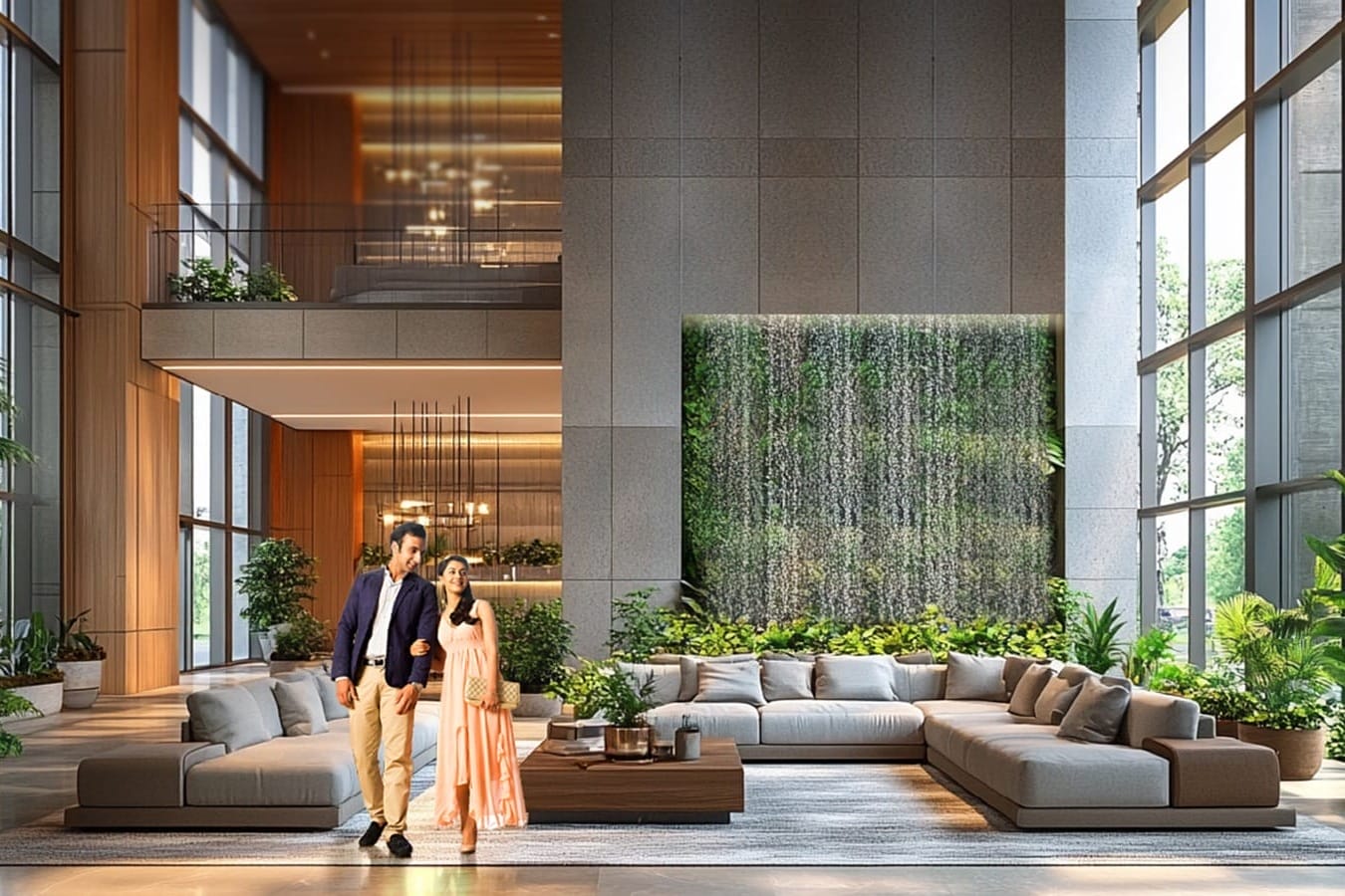 A palm-lined arrival boulevard enhances the entry experience, setting a resort-like tone in the heart of the city.