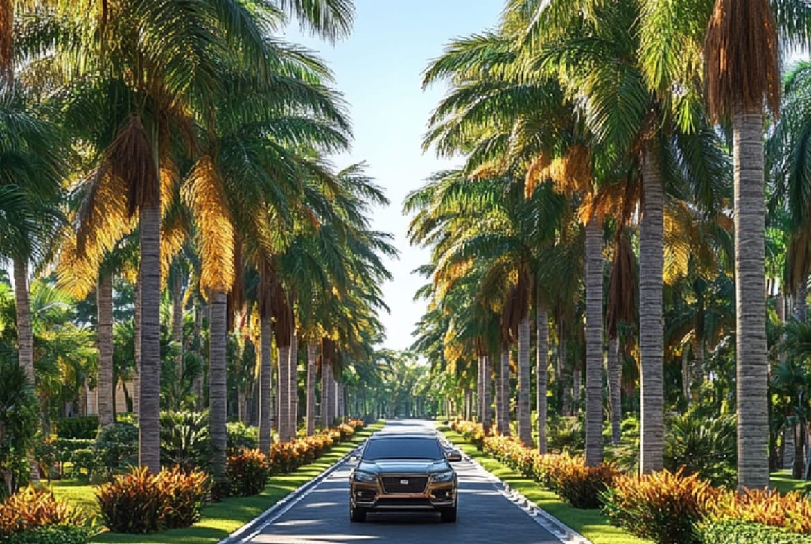 Palm-lined grand arrival boulevard