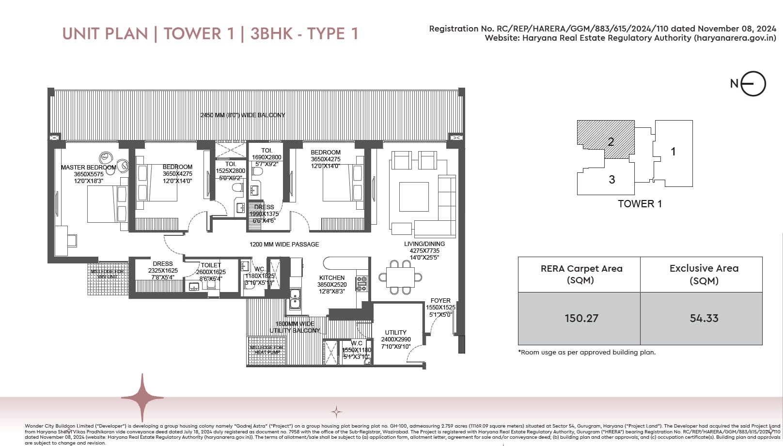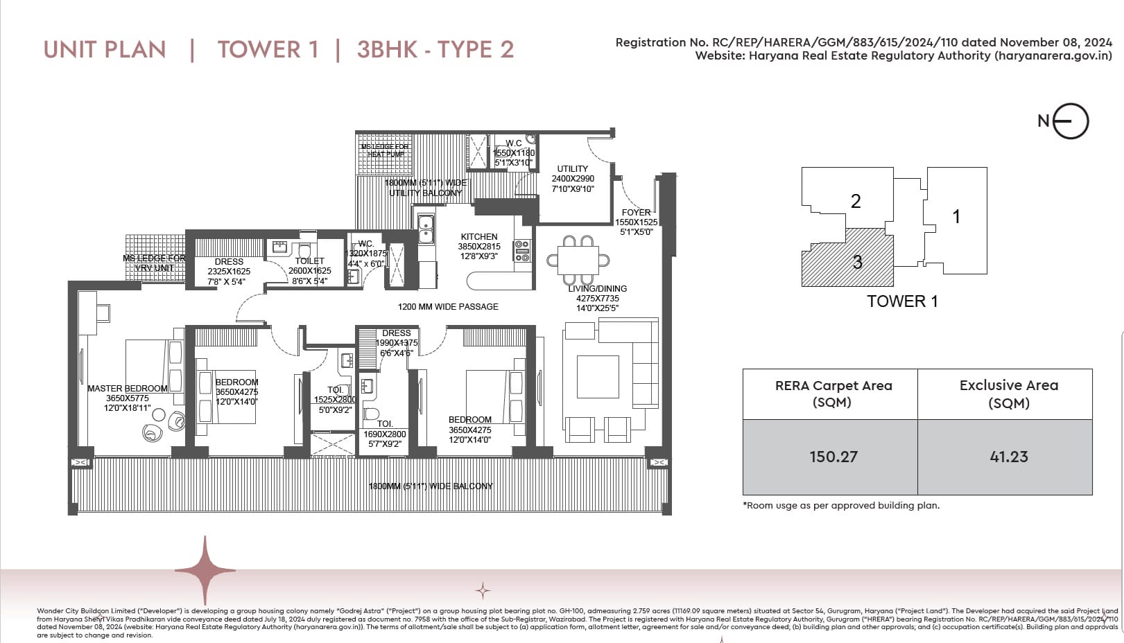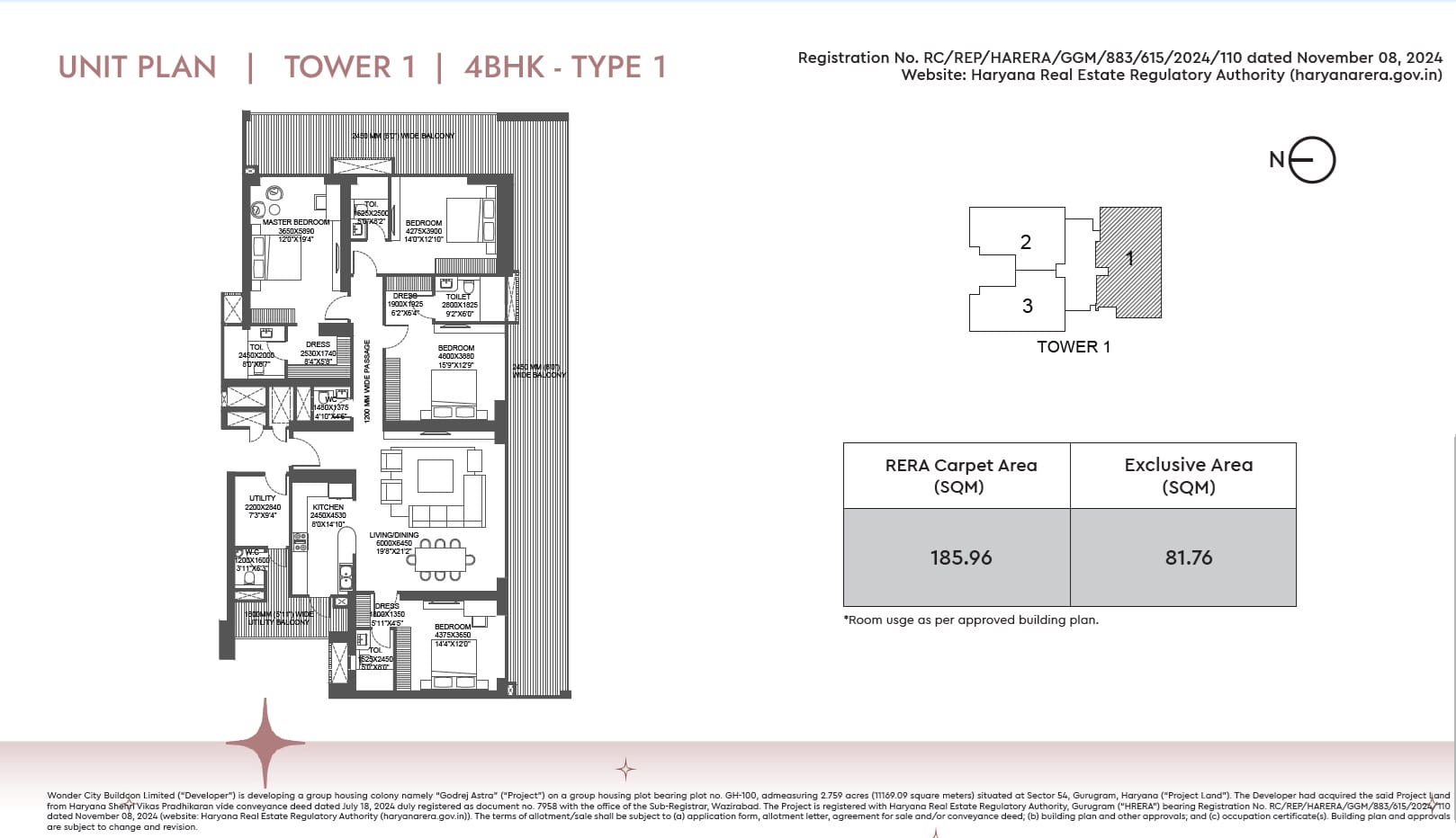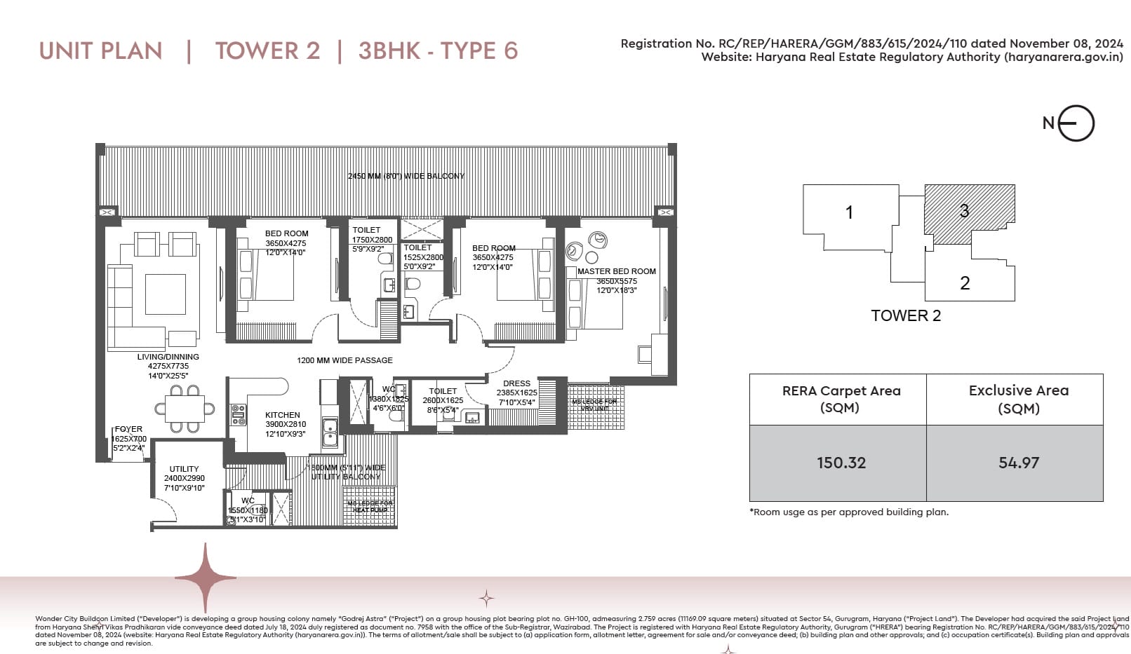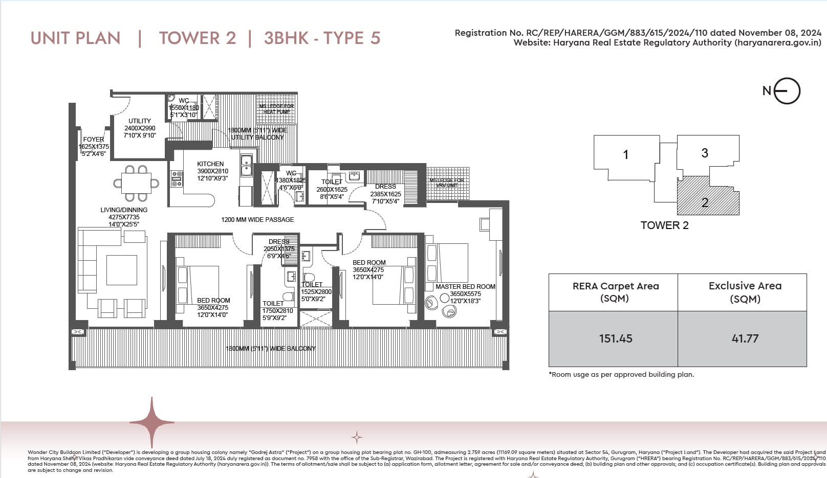 Yes, the project is RERA registered with RERA Number: GGM/883/615/2024/110.