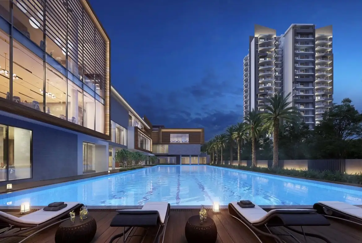 ✔ Swimming pool with a poolside lounge ✔ Jogging track and cycling paths ✔ Multiple sports courts – tennis, badminton, and squash