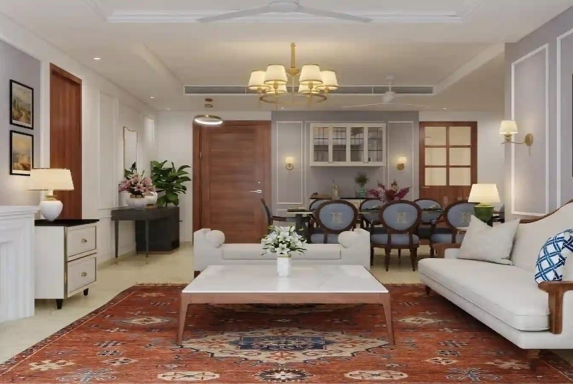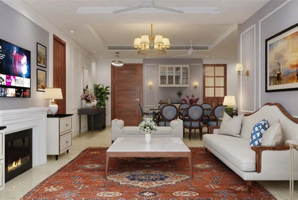 Luxurious Residences: Spacious 3 and 4 BHK apartments featuring VRV air-conditioning, premium kitchen appliances, marble flooring in living areas, and wooden flooring in bedrooms.