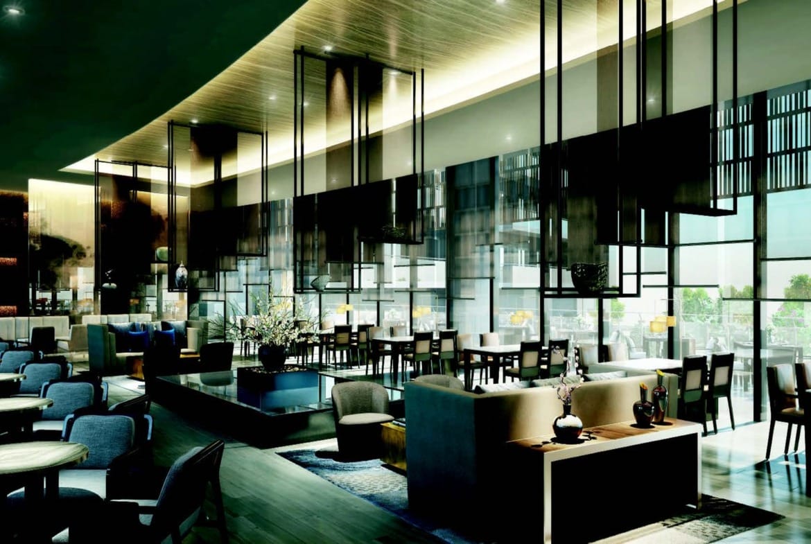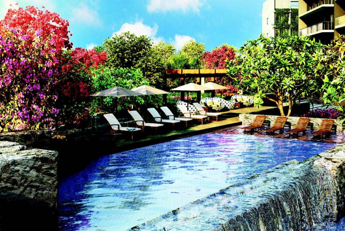 Spread across 3,344 sq. m. (36,000 sq. ft.), the clubhouse reflects serenity inspired by cascading waterfalls.
