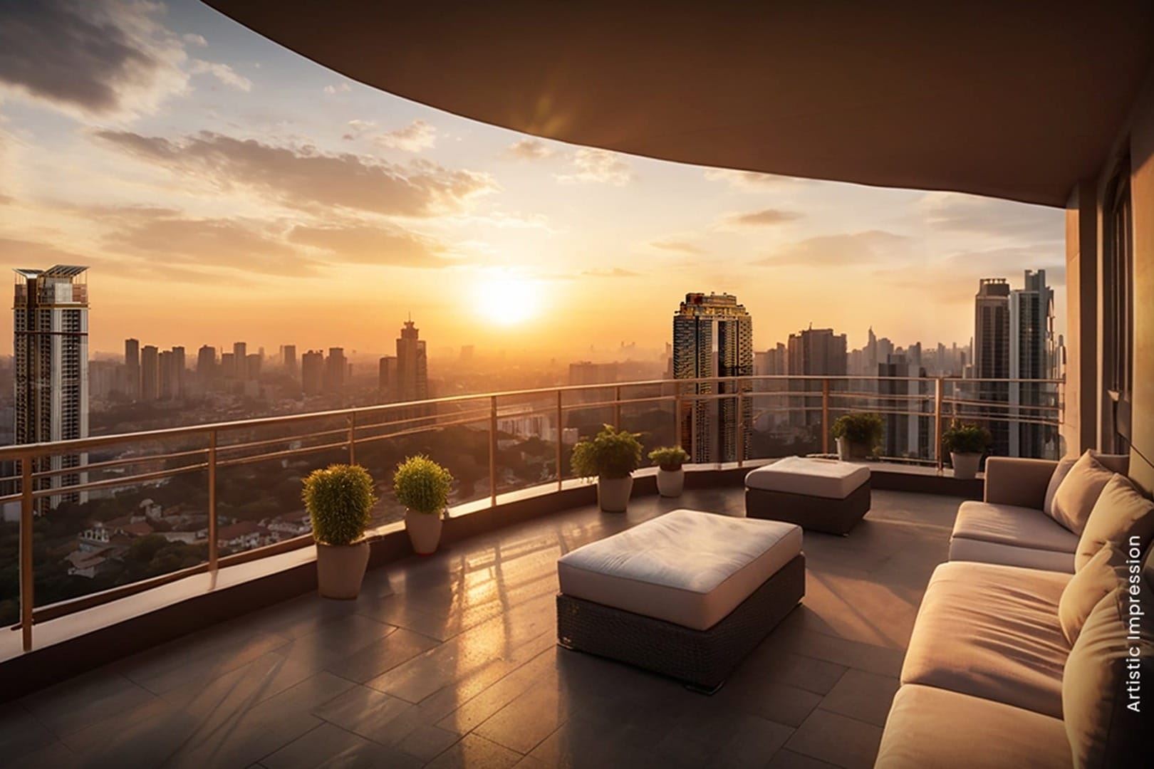 The project offers 4 BHK luxury apartments, designed with spacious interiors, high-end fittings, and expansive balconies that provide panoramic views of the city skyline.