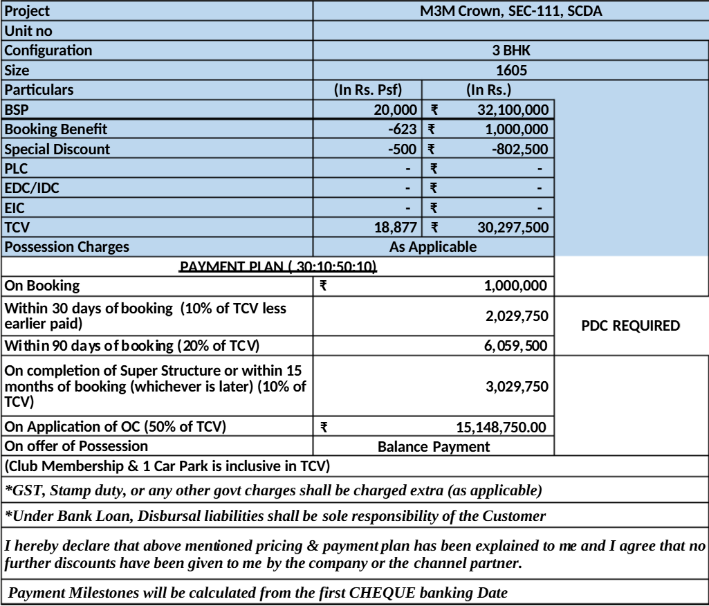 M3M Crown is an ultra-luxury residential project by M3M India, located in Sector 111, Gurgaon, along the prime Dwarka Expressway. Offering premium 3 and 4 BHK apartments, the project is designed to deliver a sophisticated lifestyle with world-class amenities and seamless connectivity.