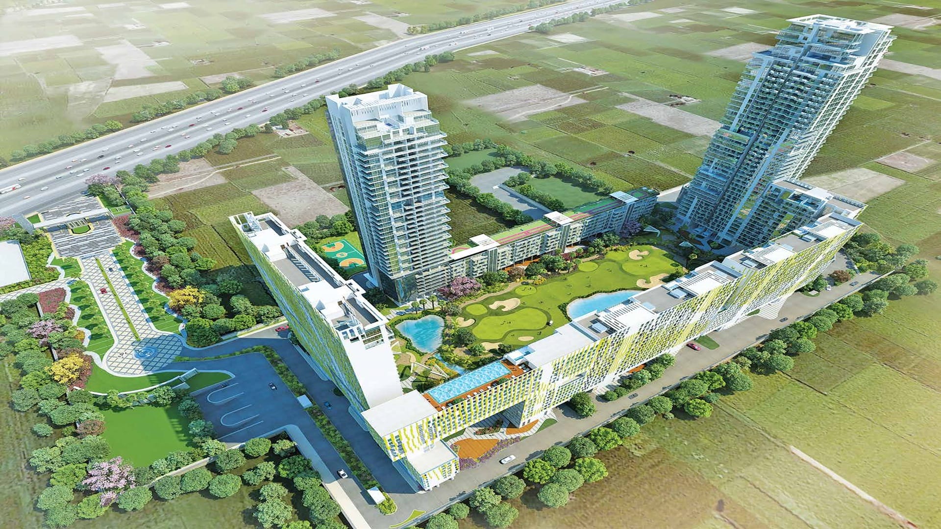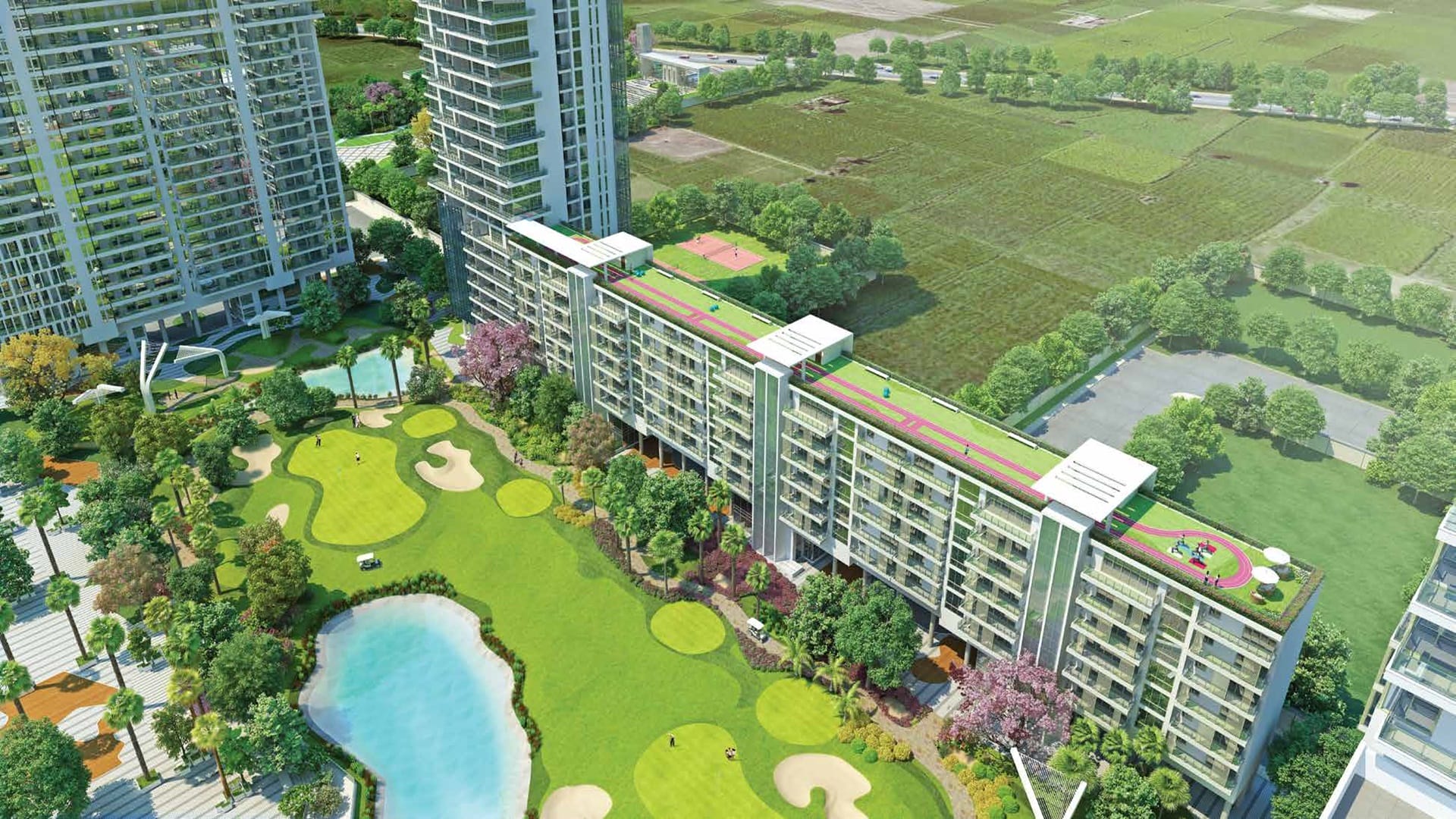 True to its name, M3M Panorama offers stunning panoramic views of the 9-hole executive golf course and surrounding greenery.