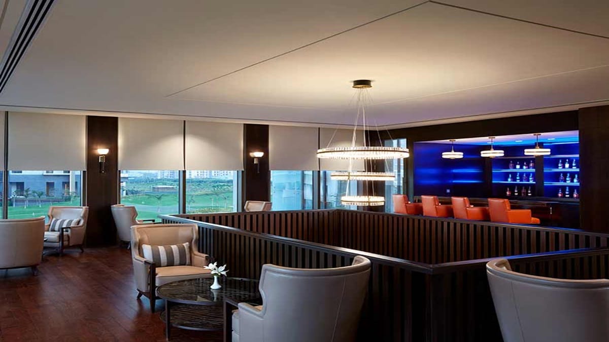 A luxurious clubhouse with indoor lounges, fine-dining options, and recreational spaces.