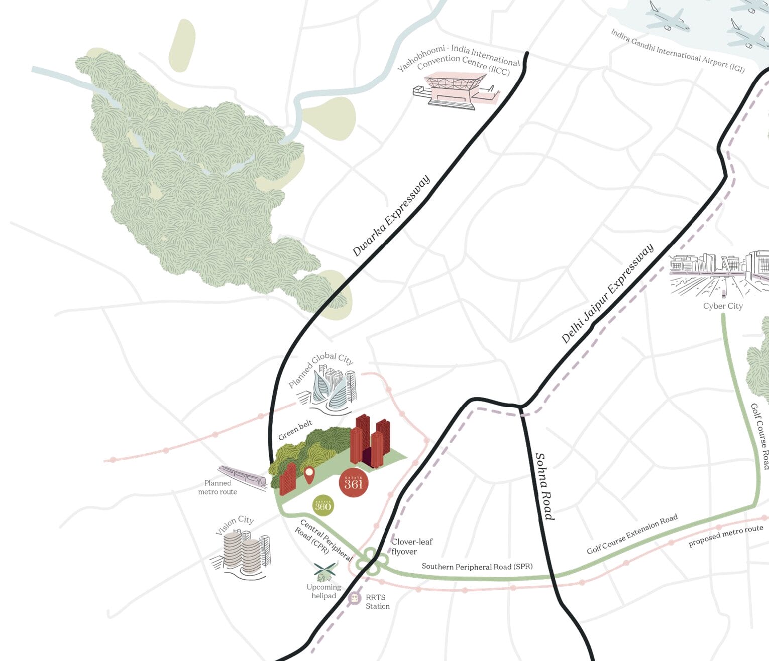 - Direct access to the Dwarka Expressway, ensuring seamless connectivity between Delhi and Gurugram