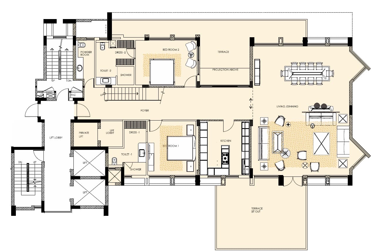 For those who relish extravagance that is a step above the rest, the Penthouses at The Hibiscus are what you desire. The 5 BHK multi-level penthouses are residences made to symbolize your success; a true representation of splendor.