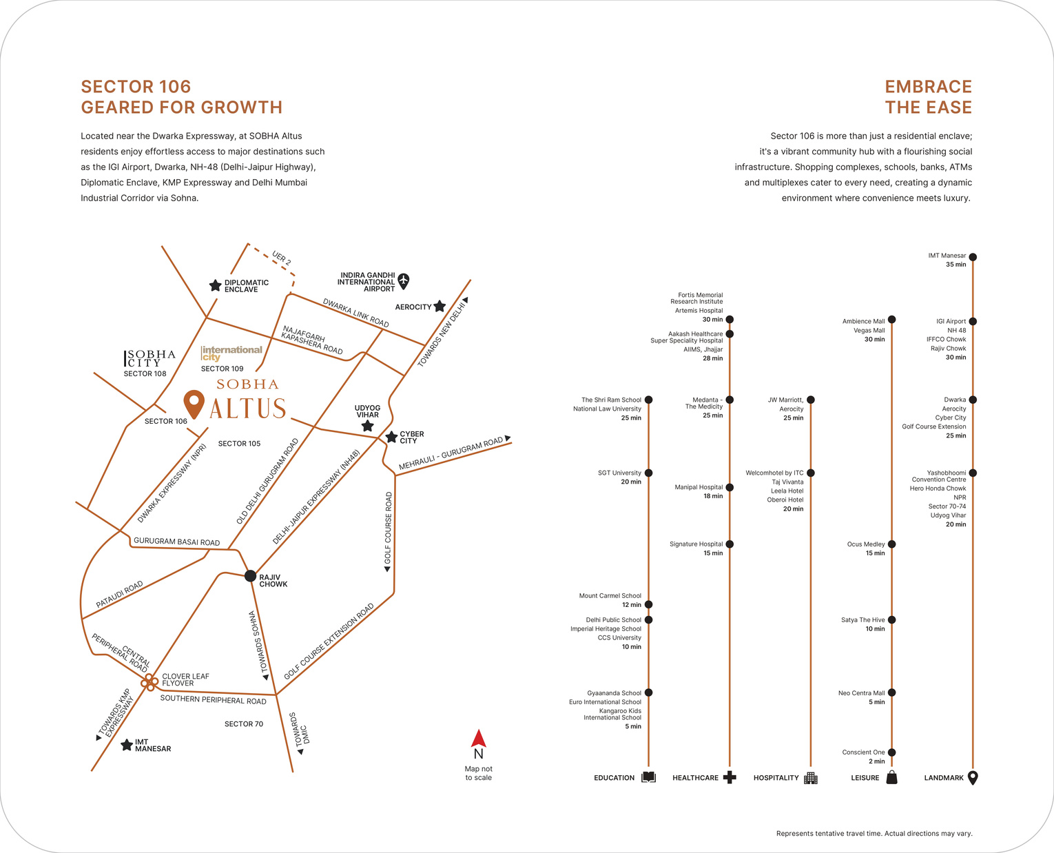 Located in Sector 106, Sobha Altus benefits from its strategic proximity to Dwarka Expressway, ensuring seamless connectivity to Delhi, Gurugram, and other key areas. With infrastructure upgrades and developments happening rapidly, this sector is becoming one of the most sought-after addresses for those seeking both accessibility and a serene living environment.