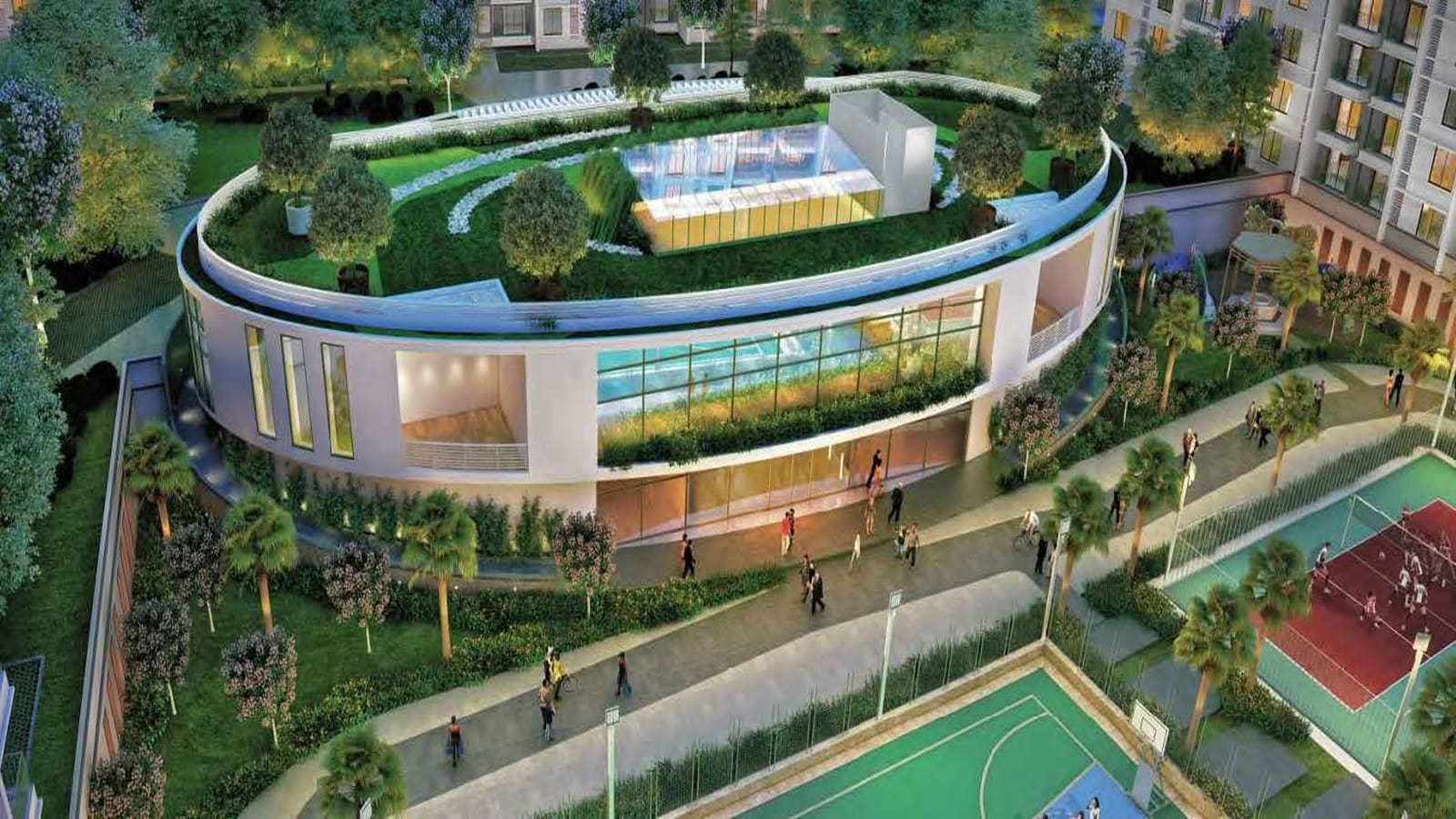 Sports Facilities: Including tennis courts, cricket ground, basketball courts, badminton courts, and more.