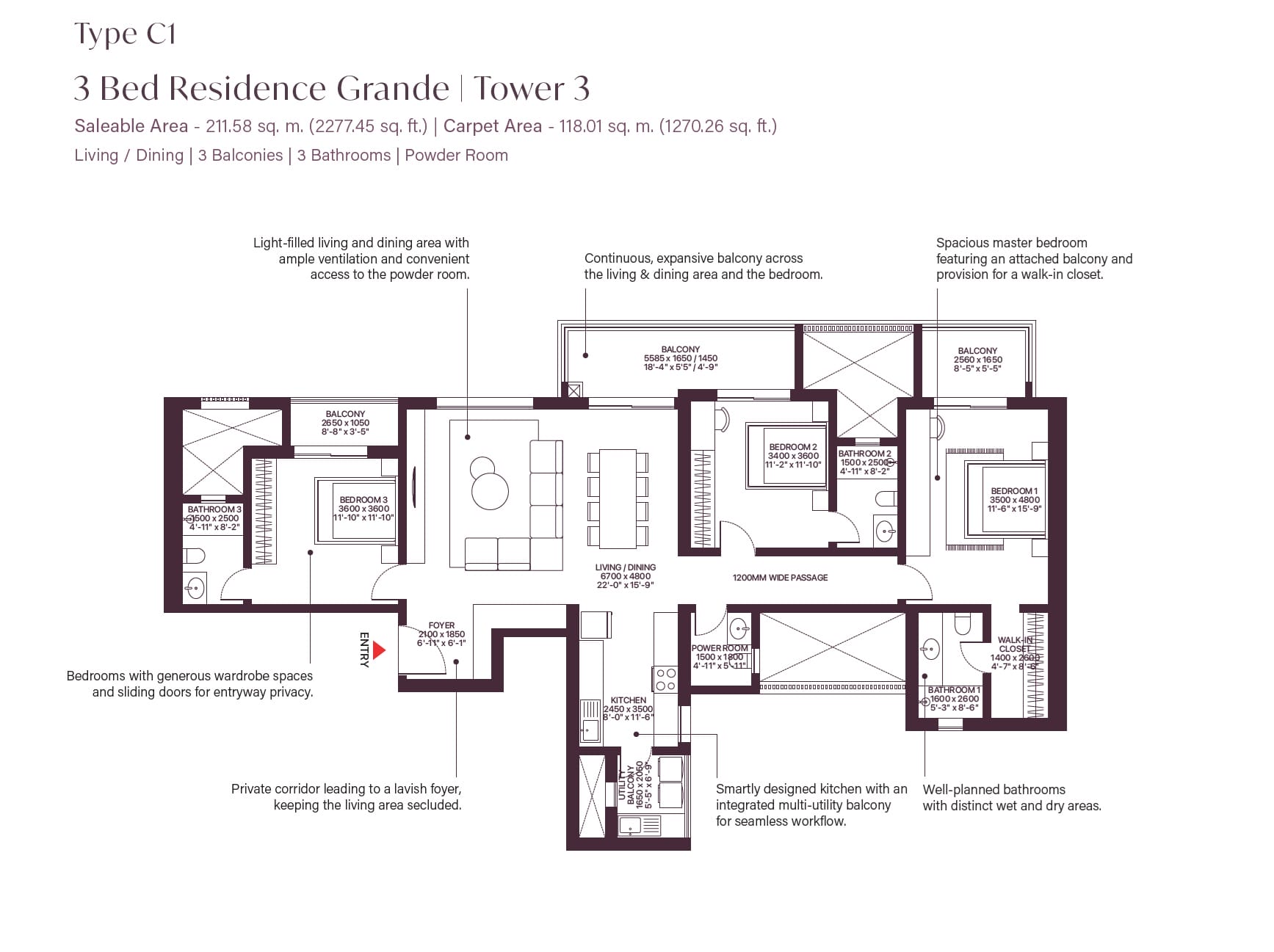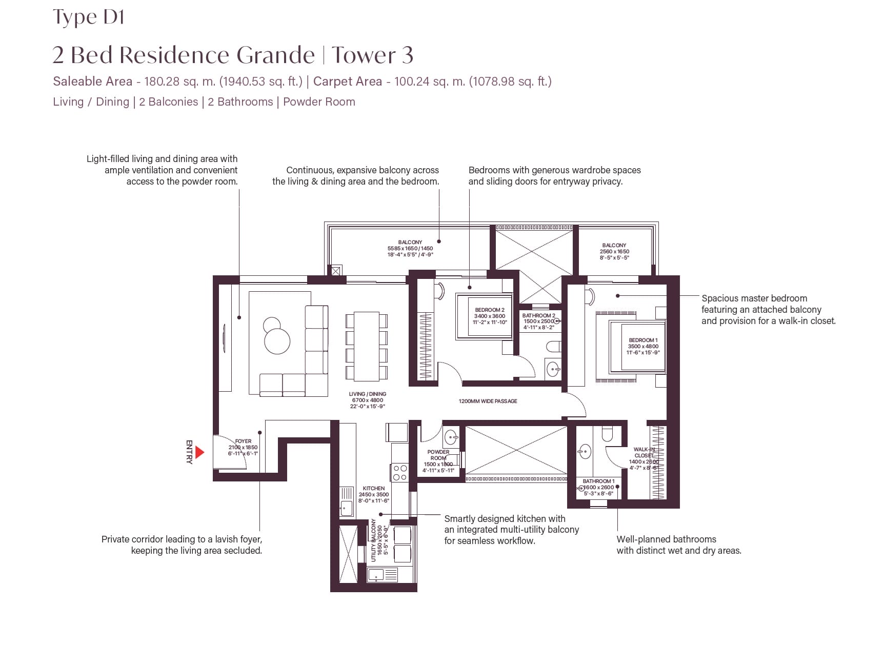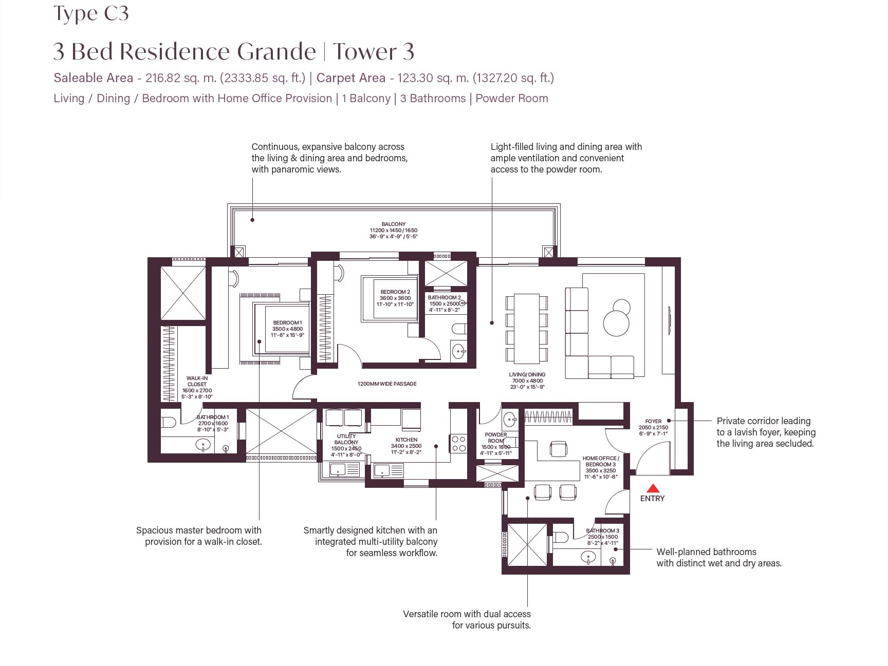 Each tower rises to 3 basements + ground + 42 floors, offering panoramic views and vertical luxury living. The residences are available in: