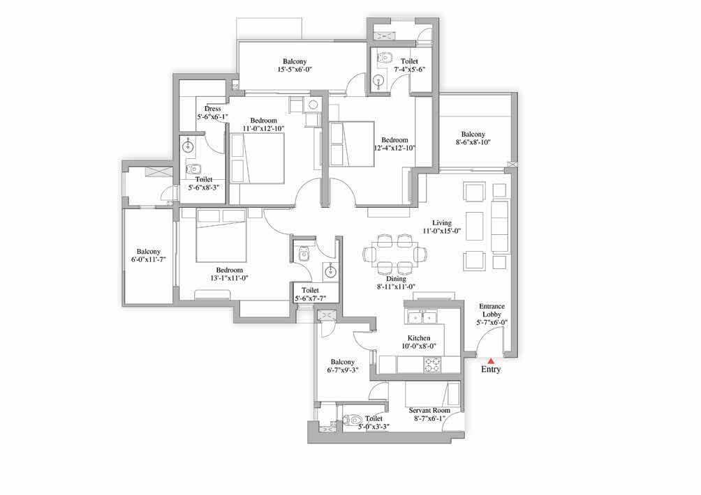 Ground + 31 storey buildings offering 4 & 5 BHK apartments, 12 ft. floor to floor height.