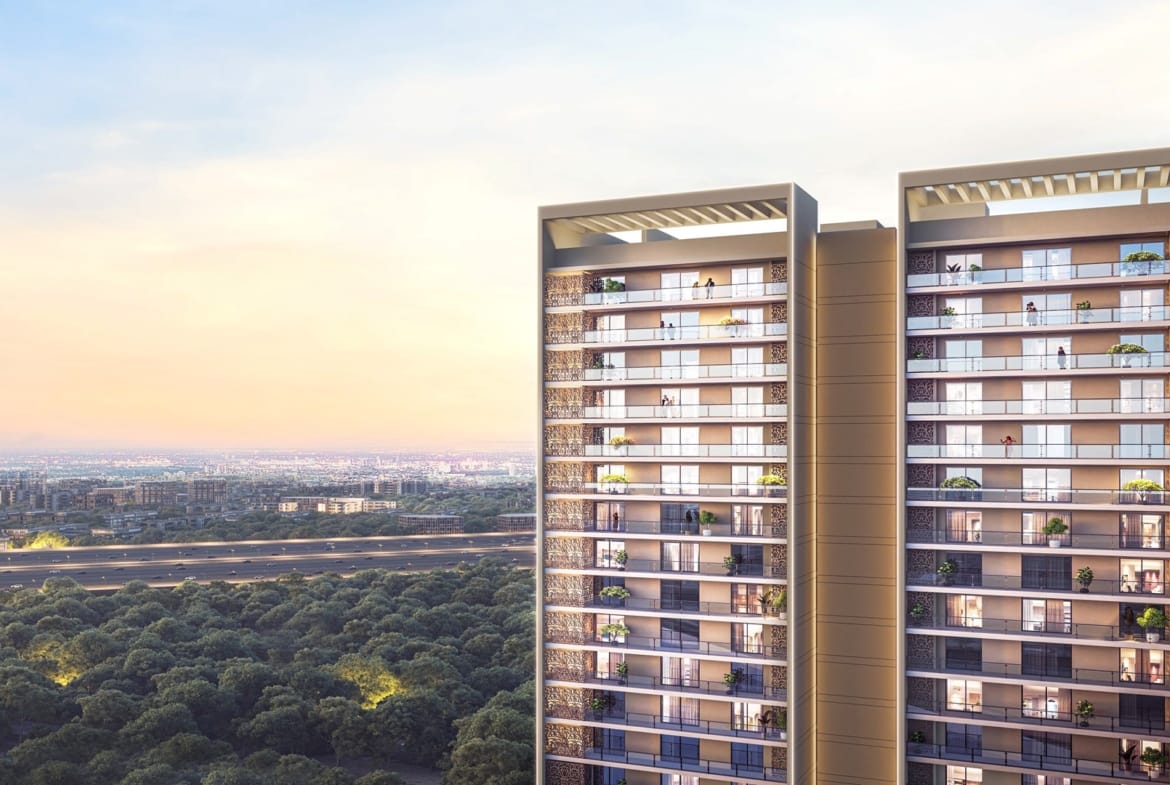 Its low-density design, only two homes per floor, no facing apartments, expansive balconies, and township-scale greenery make it a rare boutique offering along the Dwarka Expressway.